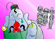 | わしは今から四千年前、悪ささしたため、お釈迦様にツボの中に閉じこめられたんだべ またお釈迦か!余計なことしくさって! |