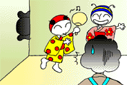 (2人オバQ音頭で浮かれている)