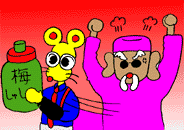 ワア〜、何するんじゃ返せ〜、ドロボーネズミめ!