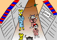 | おやじ〜、これは一体何事だチュー! じ、実は、今日は地獄のフタが開く日で、魑魅魍魎たちがやって来て、色々悪さをするんでゲス。 ちみもうりょう? |