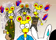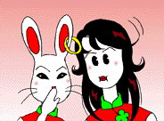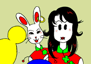 『あっ。後ろにウサギが』 『あら、よく分かりましたね私の守護霊のサンデイ・ブロッコリーでおま 守護霊占いができますよ』 『オイラを占ってくれチュー』 |