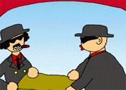 『あにさん今度のターゲットは、あのハチですかい』 『ああ、くれぐれもしくじるなよ。あのガキ誘拐して1億円 せしめちゃる』 |